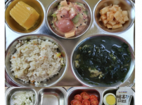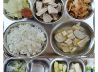 2023년 2월 28일 화요일 오전간식 : 미역쌀죽 점심 : 기장밥 순한김치어묵국 돈육수육 양배추찜 / ..