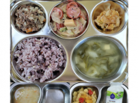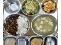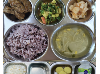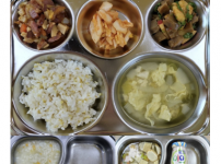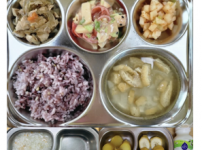 2023년 2월 27일 월요일 오전간식 : 순한김치죽 점심: 잡곡밥 아욱두부국 소고기새송이버섯볶음 방울..