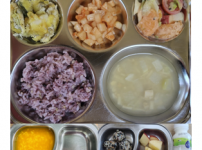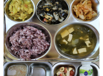 2023년 2월 22일 수요일 오전간식 : 가지애호박죽 점심 : 찰흑미밥 바지락미역국 닭가슴살칠리소스볶음 ..