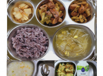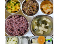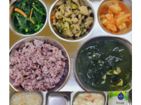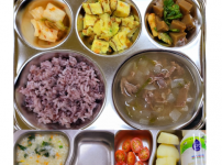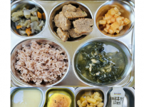 2022년 12월 8일 목요일 오전간식 : 시금치죽 점심 : 찰흑미밥 소고기무채국 모듬야채계란말이 도토..