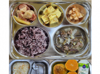 2022년 11월 29일 화요일 오전 간식: 고구마 팽이 버섯 죽 점심: 찰흑미밥 어린이육개장 모듬야채계란..
