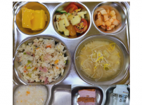 2022년 11월 11일 금요일 오전간식 : 닭가슴살야채죽 점심 : 베이컨볶음밥 숙주미소된장국 과일야채유..
