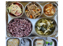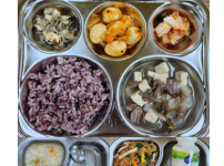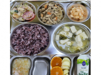 2022년 11월 21일 월요일 오전간식 : 얼갈이된장죽 점심 : 찰흑미밥 바지락미역국 소고기숙주복음 ..