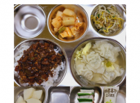 2022년 11월 24일 목요일 오전 간식 : 순한김치죽 점심 : 차조밥 물만두계란국 떡갈비구이 시금치나..