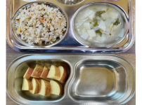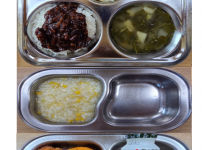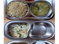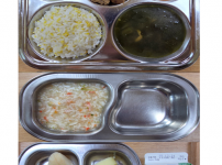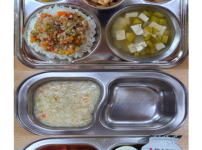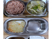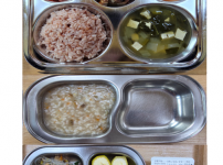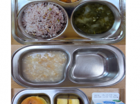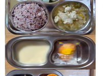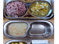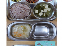 오전간식 가지당근죽 점심 차수수밥 시금치두부국 소불고기새송이볶음 김치 오후간식 버섯고기잡채 바나나 ..
