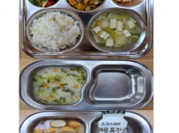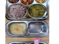 오전간식 구수한영양누룽지 점심 잡곡밥 아욱된장국 닭다리살숙주나물볶음 두부소고기케찹조림 김치 오후간식 ..