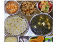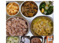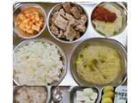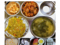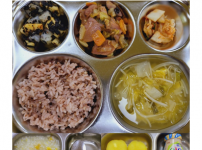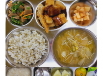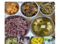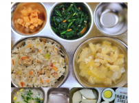 2022년 11월 1일 화요일 오전간식 : 미역쌀죽 점심 : 잡곡밥 청경채두부된장국 소고기숙주나물볶음 ..
