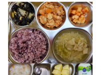 2022년 8월 31일 수요일 오전간식 : 소고기죽 점심 : 잡곡밥 참치김치국 돈육숙주볶음 가지나물무침 ..